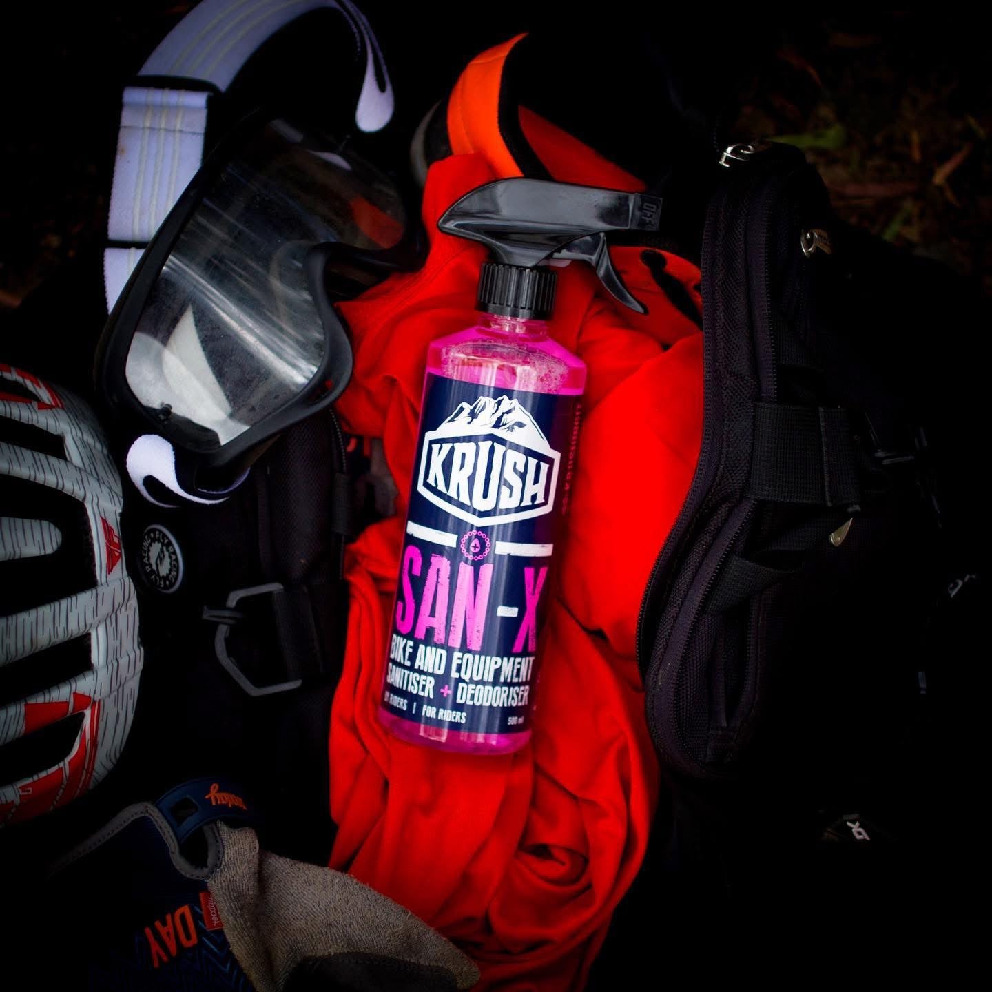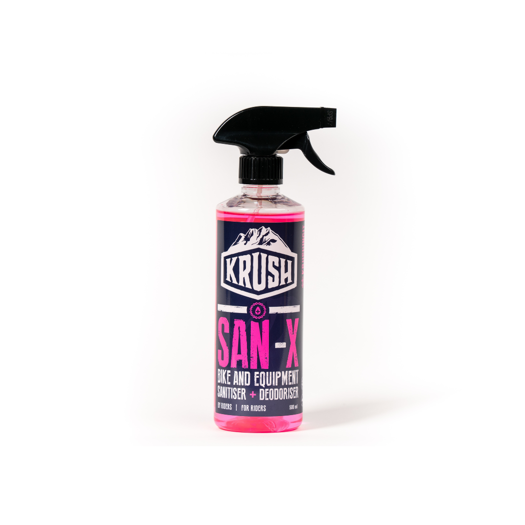 KRUSH San-X is ideal for sanitising and deodorising your ride and kit, the full rental fleet and customer bikes in the workshop.